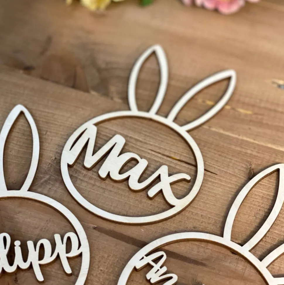 Personalisierter Osterhasenkopf aus Holz – Einzigartiger Geschenkanhänger aus der Werkstatt am See
