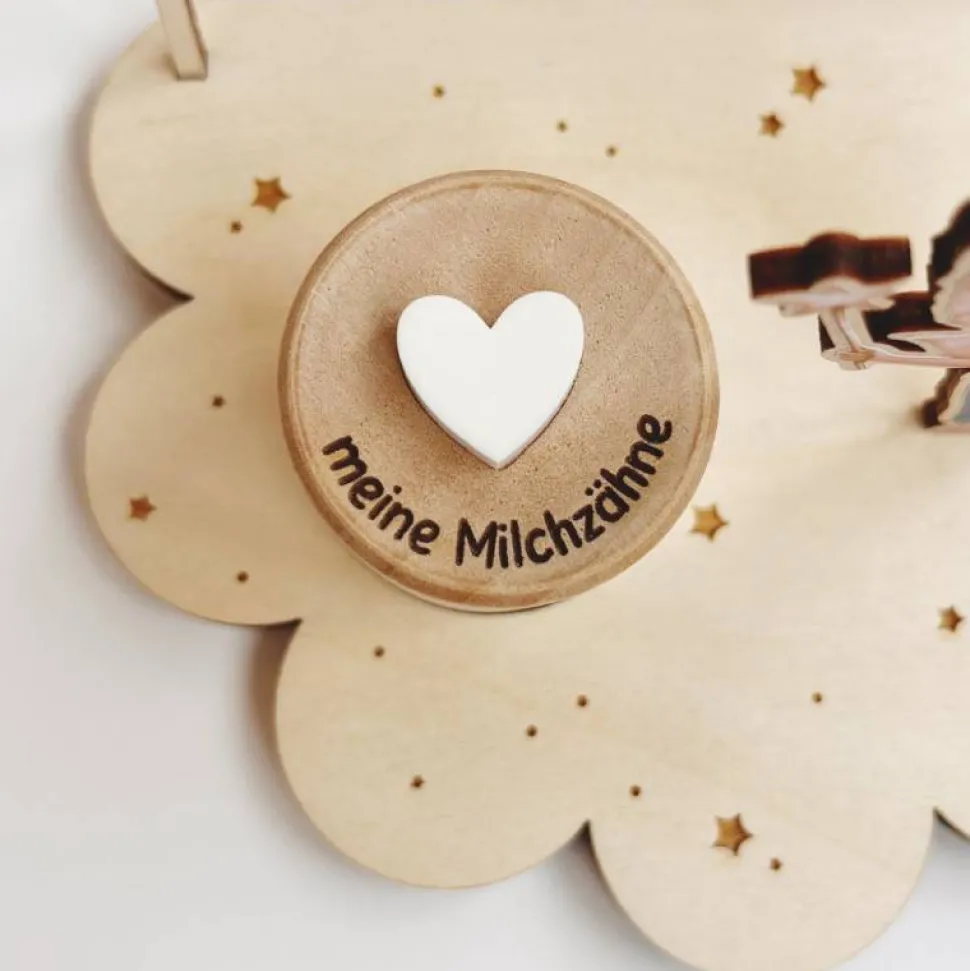 – ein Zahndöschen mit einem Herz aus Acryl und der Aufschrift „meine Milchzähne