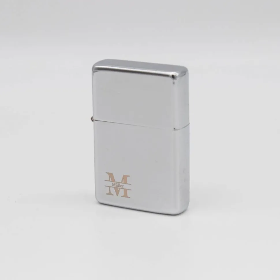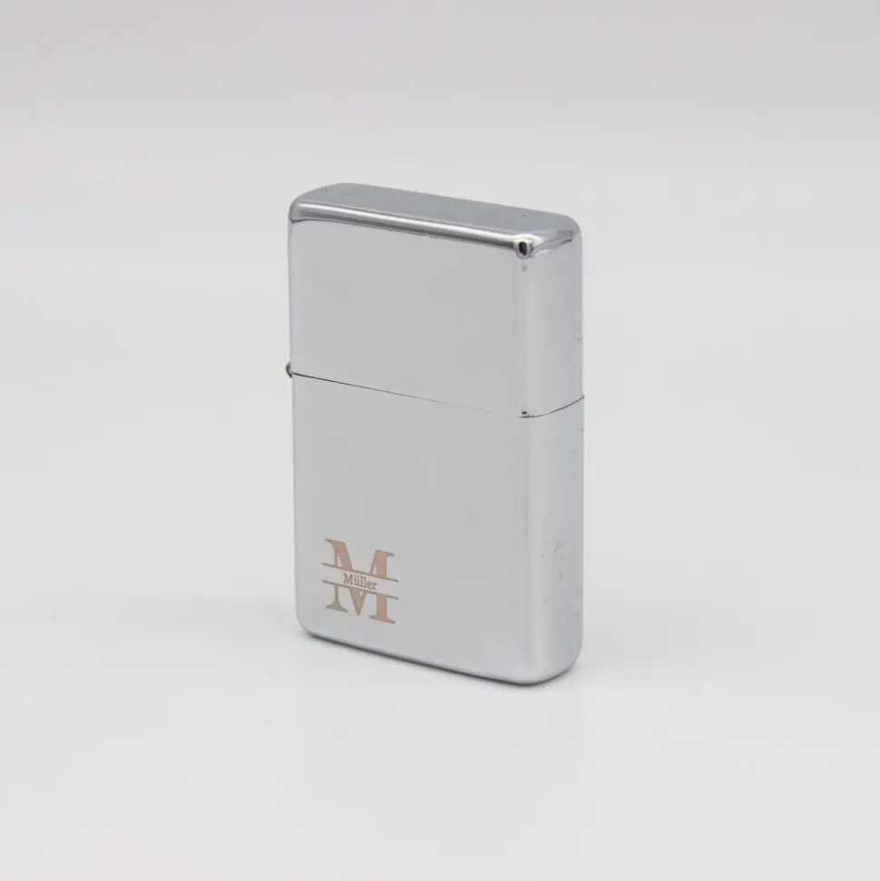 Wählen Sie einen Buchstaben für das Monogramm und ergänzen Sie einen Namen, der elegant in das Monogramm integriert wird. Außerdem können Sie entscheiden, ob das Monogramm für Rechts- oder Linkshänder angepasst und entsprechend auf der bevorzugten Seite des Feuerzeugs angebracht wird.