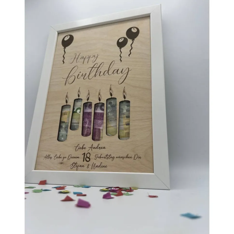 Du suchst ein einzigartiges Geldgeschenk zum Geburtstag? Oft weißt du nicht, was du schenken sollst oder der Beschenkte wünscht sich einfach Geld? Dann ist unser personalisiertes Geldgeschenk im Bilderrahmen genau die richtige Wahl!