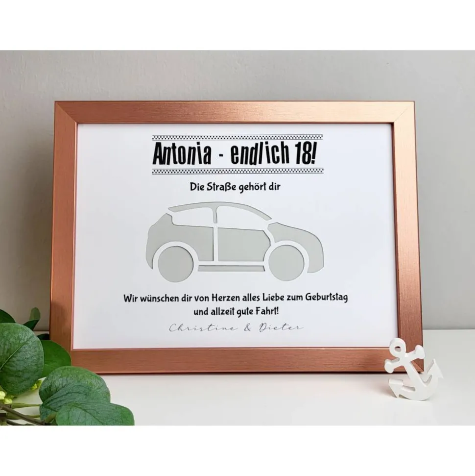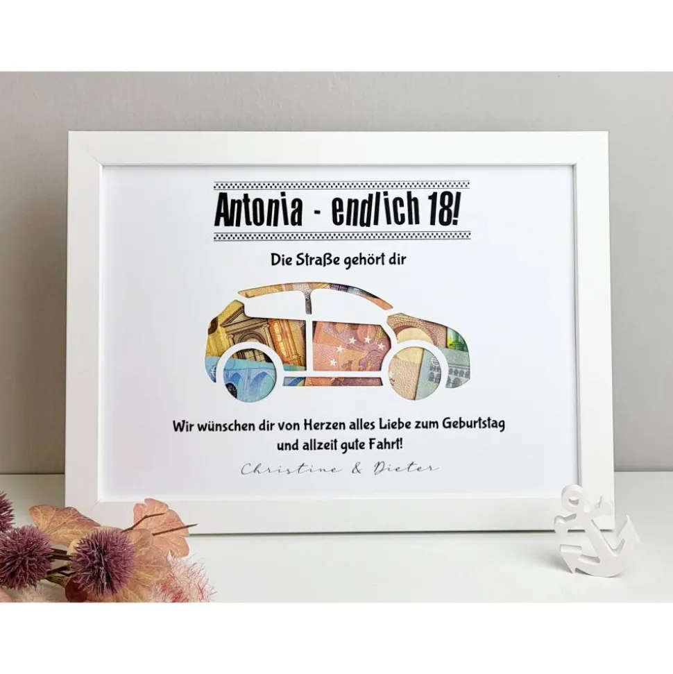 Geldgeschenkrahmen „Auto“ – Das perfekte Geldgeschenk zum 18. Geburtstag