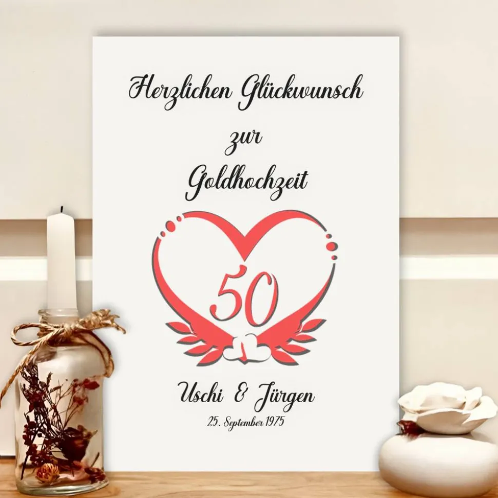 - 1x personalisiertes Bild zur Goldhochzeit (A4)