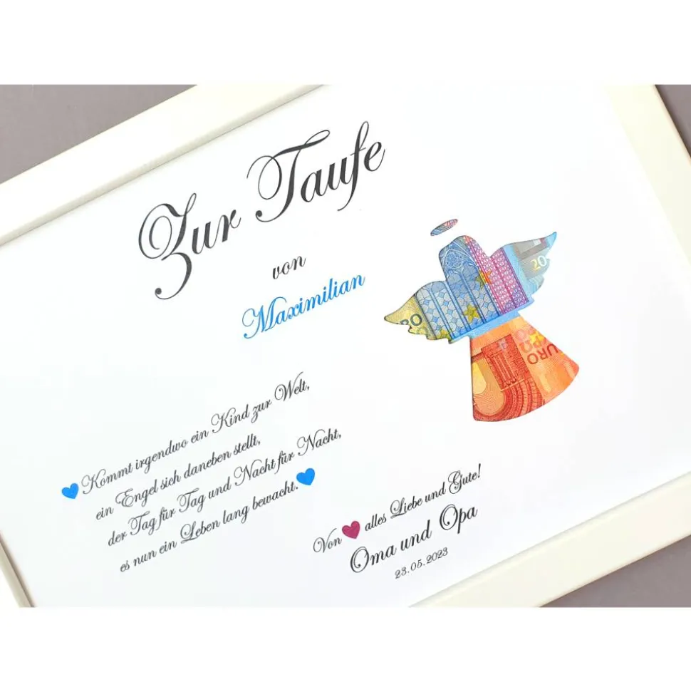 Den gewünschten Geldbetrag können Sie einfach zwischen dem Bild und dem grauen Karton hinterlegen.