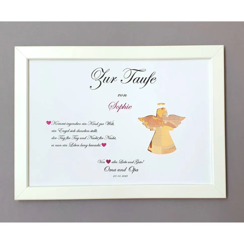 Der Bilderrahmen ist im Preis inbegriffen weiß und mit einer Acrylscheibe.