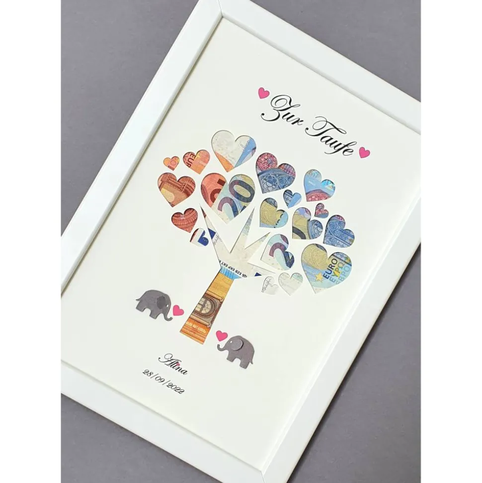 Den gewünschten Geldbetrag können Sie einfach zwischen dem Bild und dem grauen Karton hinterlegen.