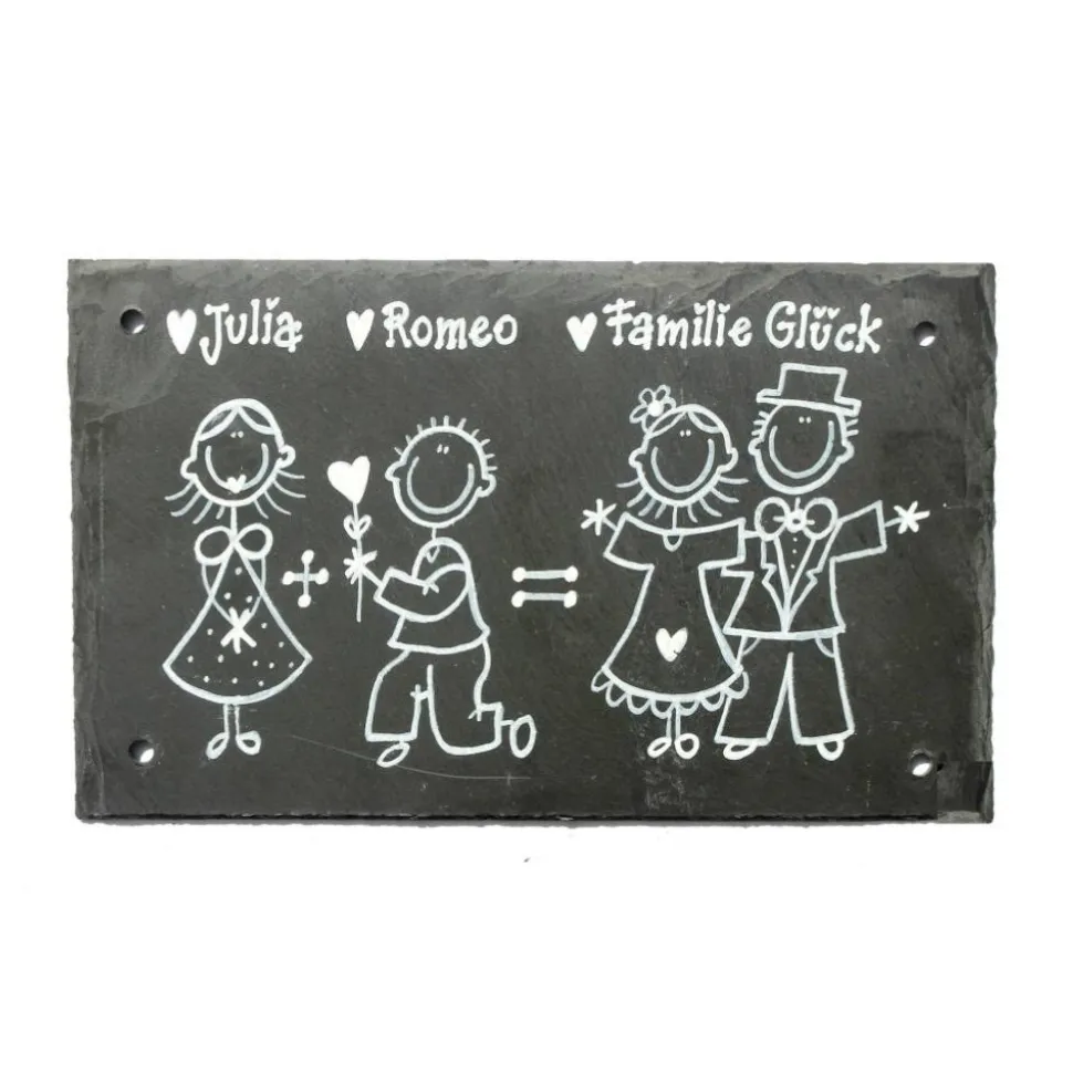 Verleihe deinem Zuhause einen ganz besonderen Charme mit unserem handgemachten Türschild aus hochwertigem Schiefer. Jedes Schild wird individuell mit deinen Wunschnamen und in deiner Lieblingsschriftart gestaltet – so entsteht ein echtes Unikat, das einzigartig und persönlich ist.