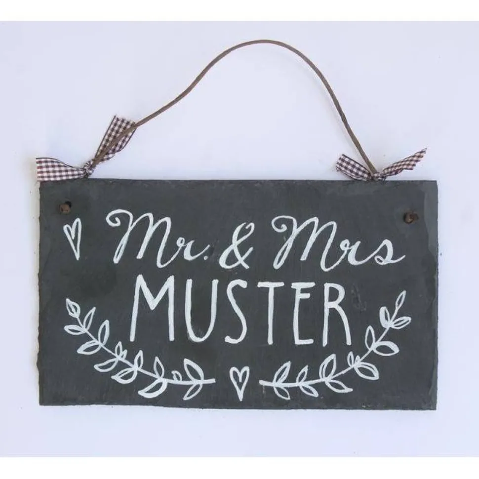 Überrasche das Brautpaar mit einem einzigartigen, personalisierten Hochzeitsgeschenk: Das Schiefer Türschild Mr & Mrs mit Name ist exklusiv, handgemacht und voll im Trend. Zeige maximale Wertschätzung und verschenke eine zeitlose Erinnerung, die die Liebe und Verbundenheit des Paares auf elegante Weise widerspiegelt.