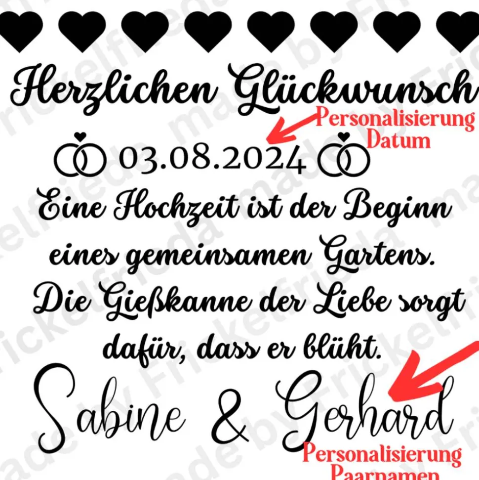 Dann schauen Sie sich meine schön gestaltete Geschenk Gießkanne an , die Ich extra zum Thema Glückwünsche zur Hochzeit entwickelt habe.