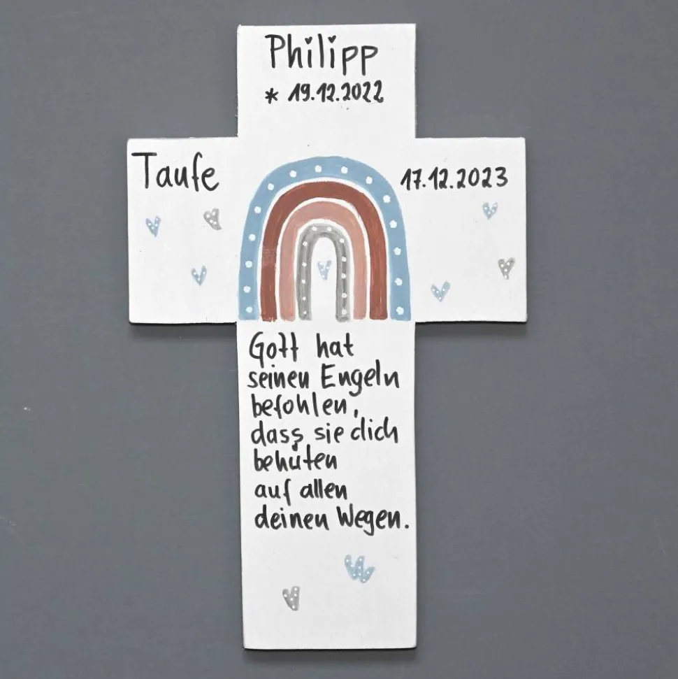 Als personalisiertes Produkt ist ein Umtausch von dem Taufkreuz nicht möglich. Bei Fragen oder Unklarheiten sind wir jedoch immer für Sie da, um eine Lösung zu finden. Ihre Zufriedenheit ist uns sehr wichtig! :