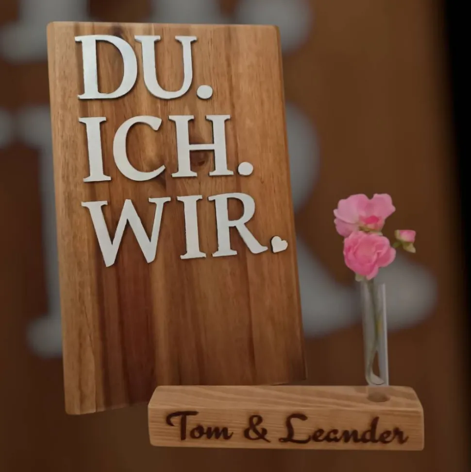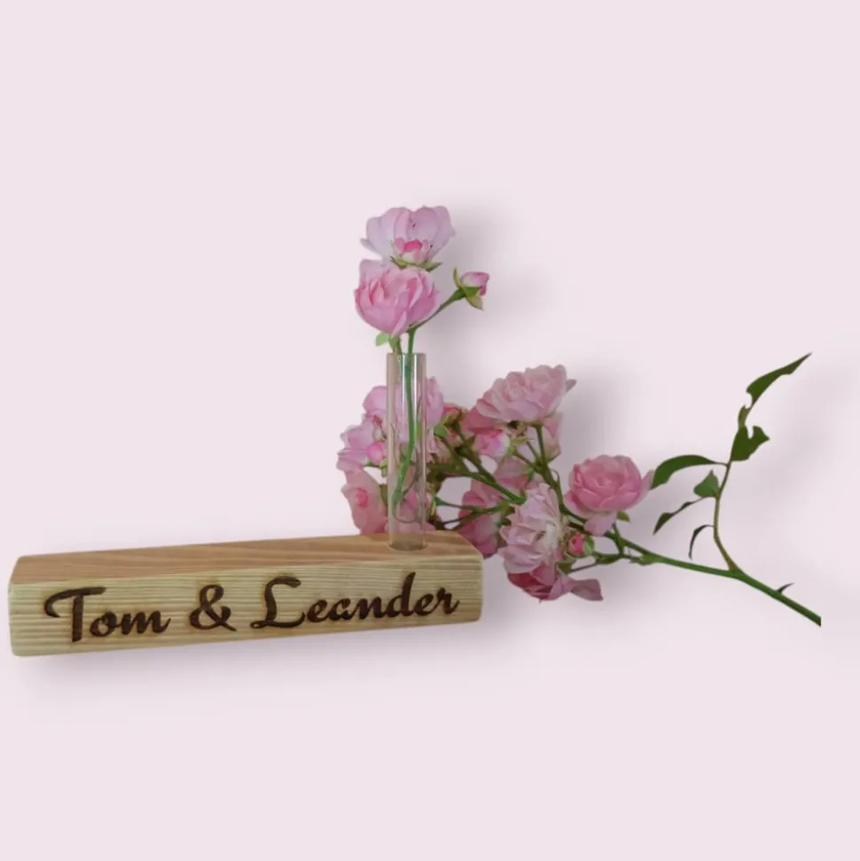 Durch den optionalen Holzsockel mit kleinem Reagenzglas bekommt dein Geschenk eine besonders liebevolle Note: Einfach einen Geldschein oder eine kleine Blume hineinstecken – und fertig ist die persönliche Aufmerksamkeit mit Mehrwert.