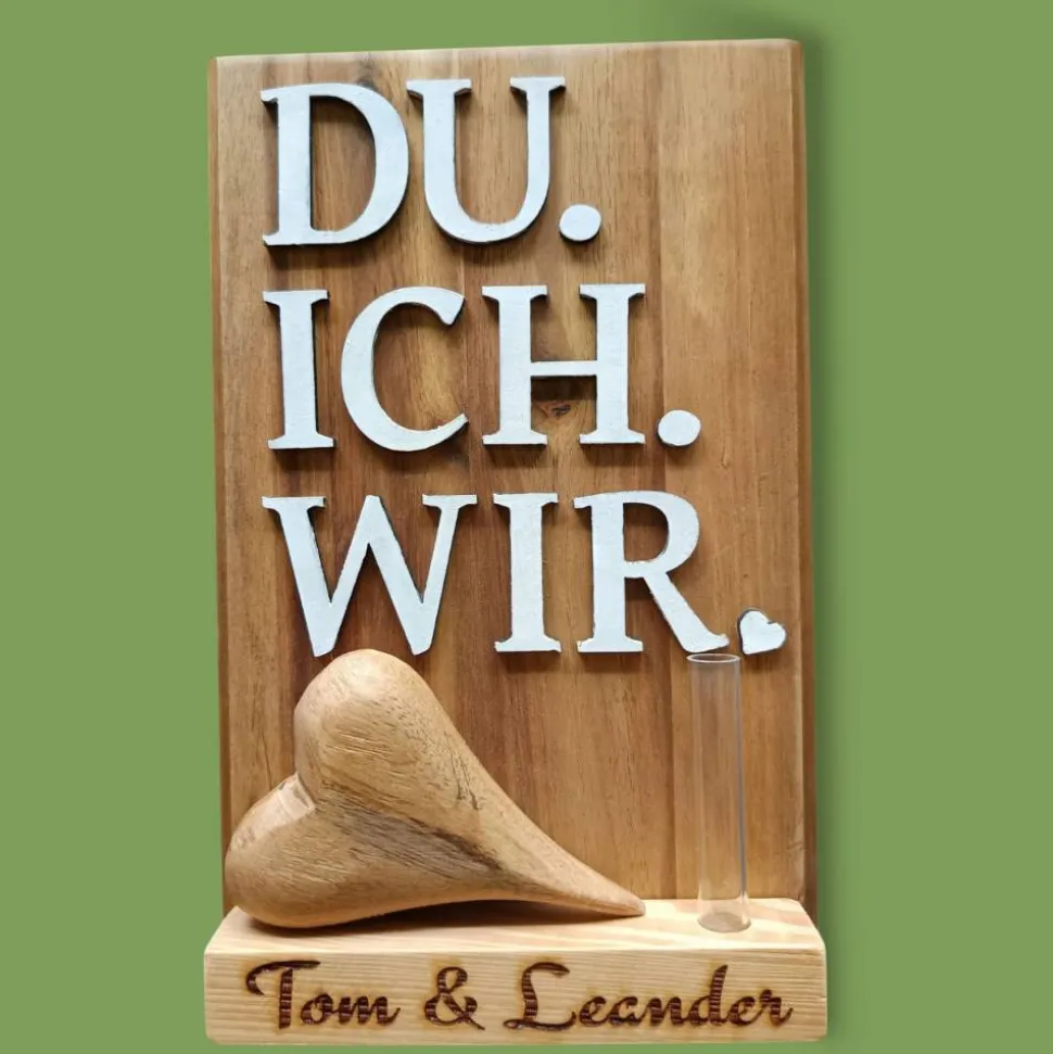 Dieses handgefertigte Schild aus edlem Akazienholz vereint Erinnerung und Dekoration in einem – und bietet die perfekte Möglichkeit, Geld oder einen Gutschein mit Herz zu verschenken.
