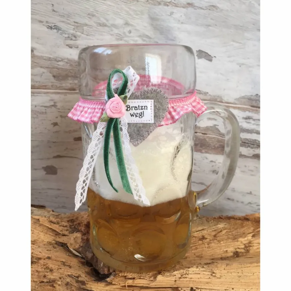 Zünftiges Maßkrug-Strumpfband – das perfekte Accessoire für das Oktoberfest! Kennzeichne deinen Bierkrug oder dein Bierglas mit dem individuell gestaltbaren Markierungsband, das aus einer hübschen Karorüsche genäht und einem Filzherz verziert ist. Mit deiner persönlichen Wunschbeschriftung wird das Maßkrugband einzigartig und verhindert zuverlässig das Vertauschen deiner kostbaren Maß.