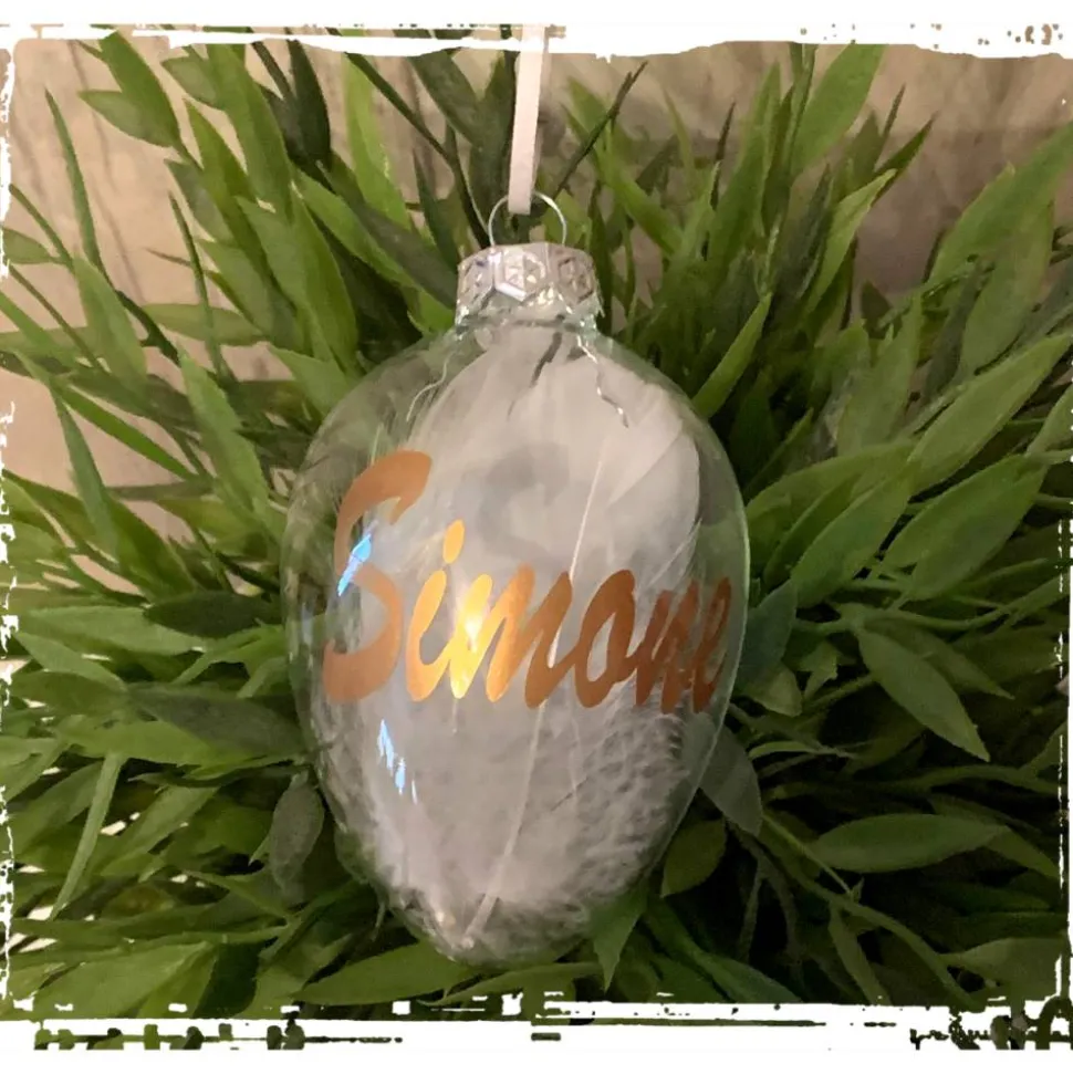 Schrift und Motiv werden aus Vinylfolie geschnitten und in Handarbeit auf das Osterei gebracht.