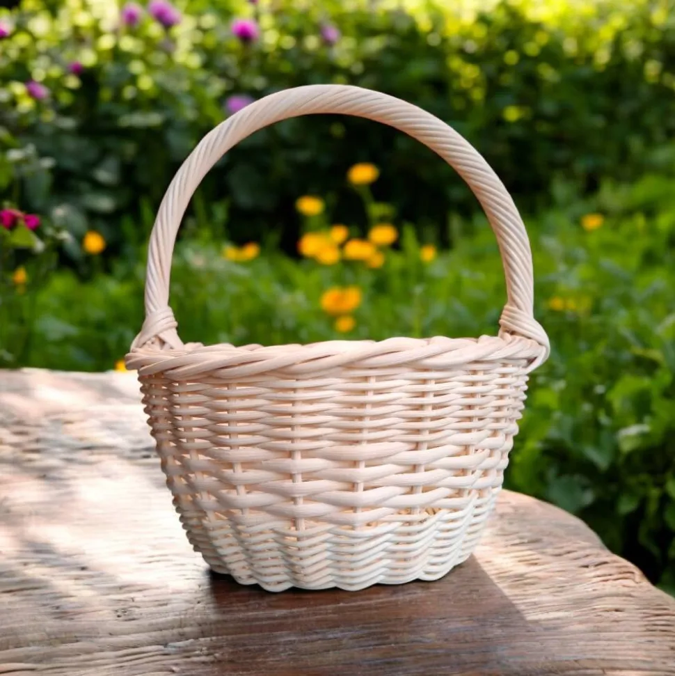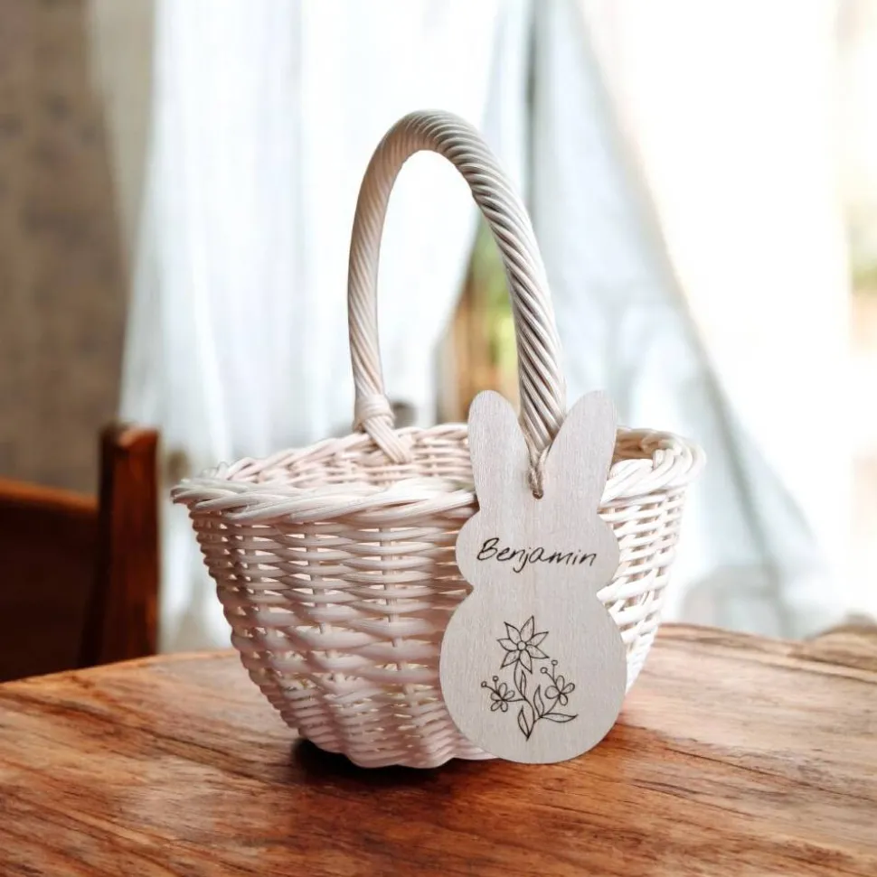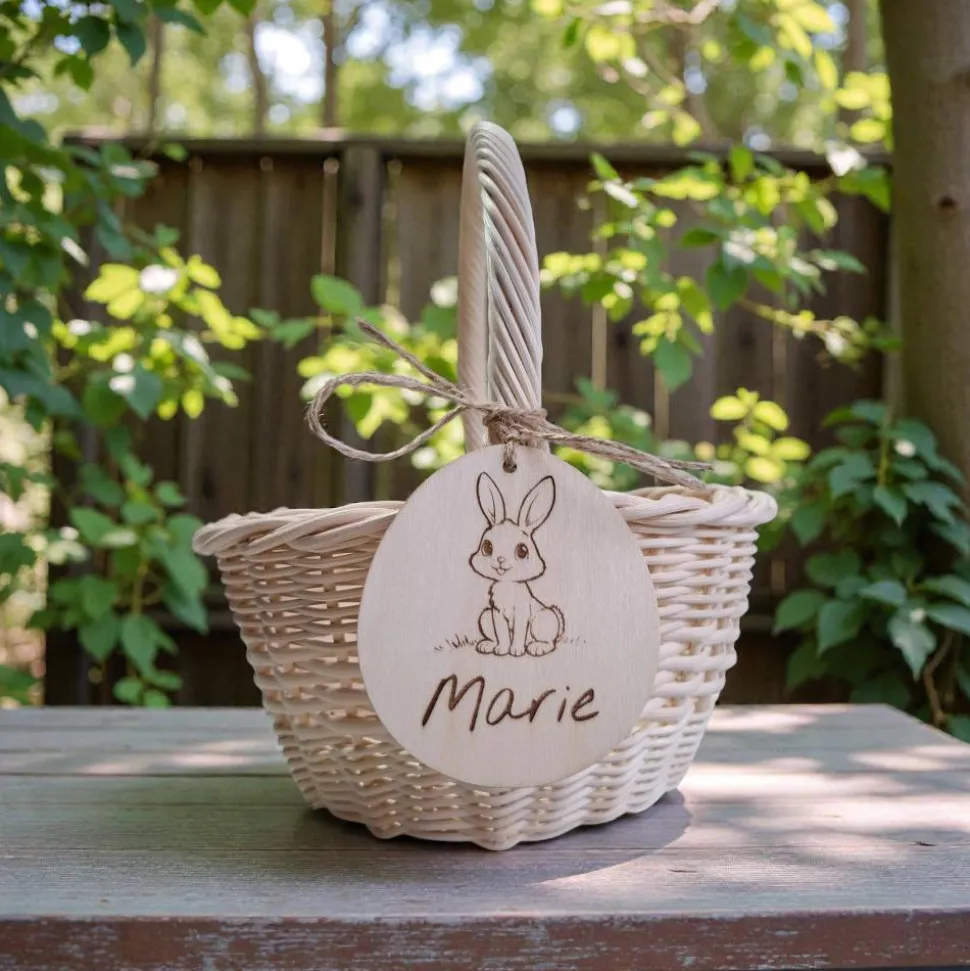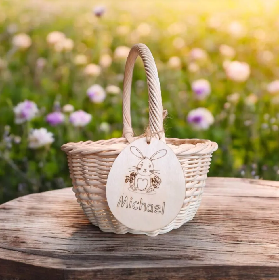 Dieses süße handgeflochtene Körbchen aus Peddigrohr lässt Kinderaugen strahlen. Ein personalisierter Holzanhänger mit Namen Ihres Kindes verleiht diesem Produkt Individualität.