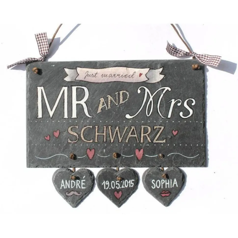 Ein exklusives Geschenk voller Liebe – personalisiere jetzt dein Schiefer Türschild für das Brautpaar!