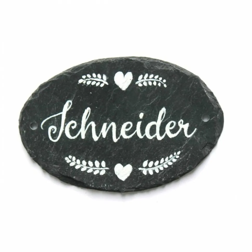 Nachhaltigkeit & Qualität: Schiefer ist ein 100% Naturprodukt – jedes Stück ist ein Unikat mit einzigartiger Struktur, Ecken und Kanten. Das Schild ist langlebig, robust, pflegeleicht und umweltfreundlich.