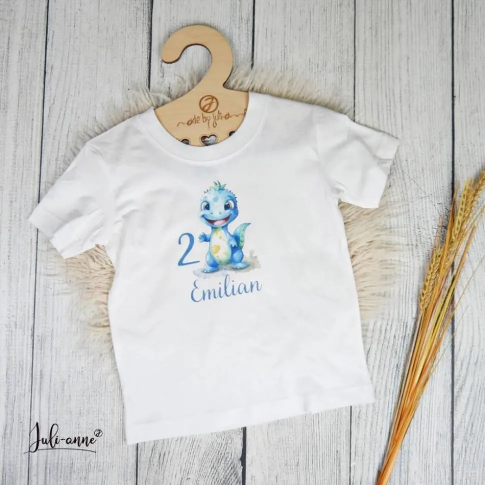 Personalisiertes Shirt Geburtstag Dino Blau mit Name & Zahl