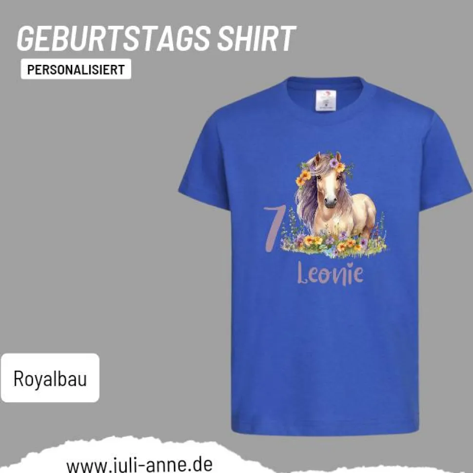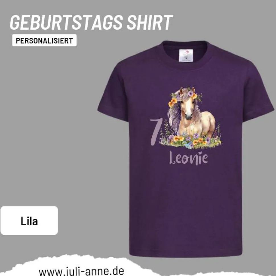 Personalisiertes Shirt GEBURTSTAG Zahl & Name personalisiert Flower Horse