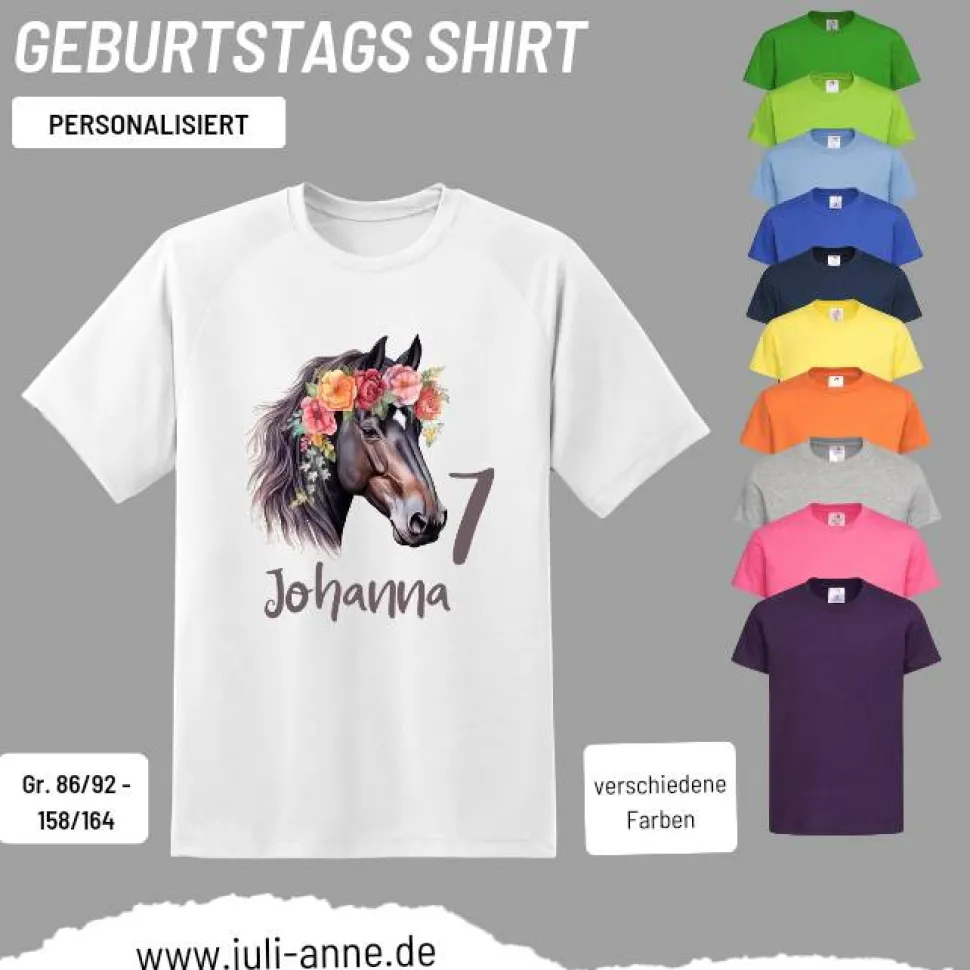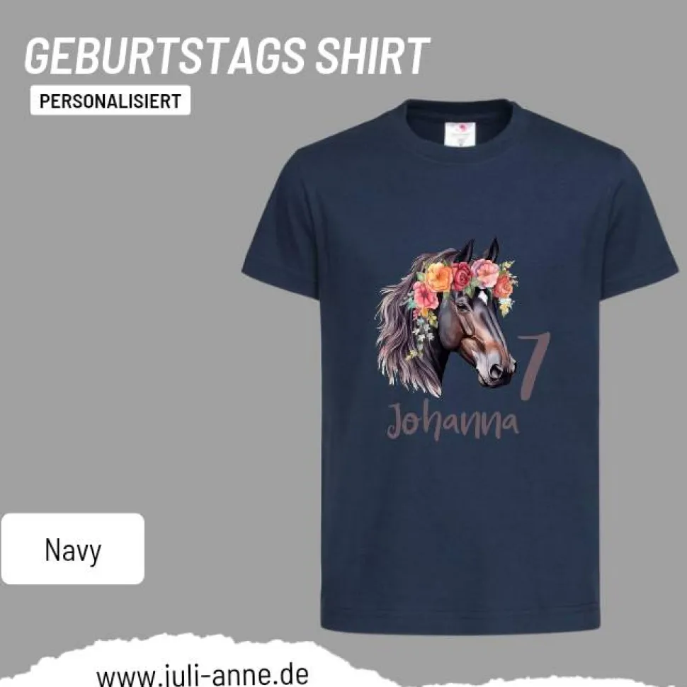 Personalisiertes Shirt GEBURTSTAG Zahl & Name personalisiert Flower Horse