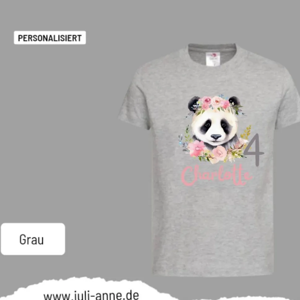 Personalisiertes Shirt GEBURTSTAG Zahl & Name personalisiert Panda mit Blumen