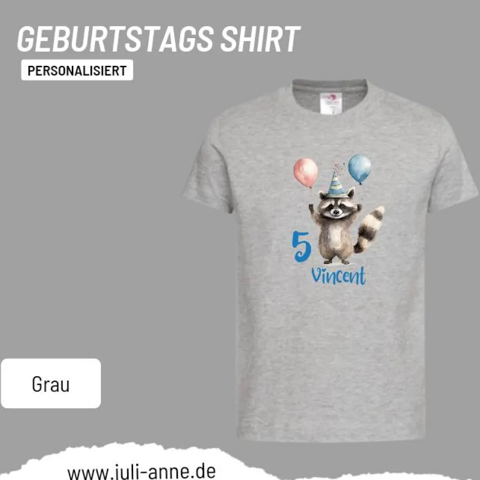 Personalisiertes Shirt GEBURTSTAG Zahl & Name personalisiert Party Waschbär