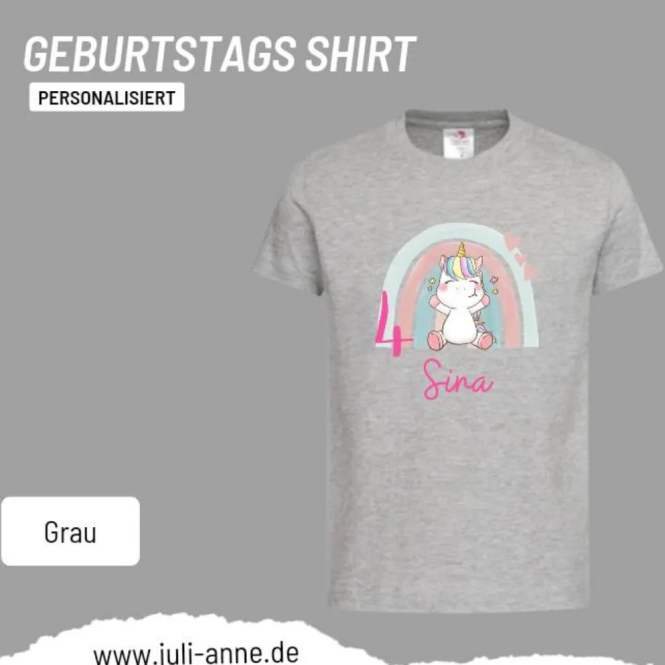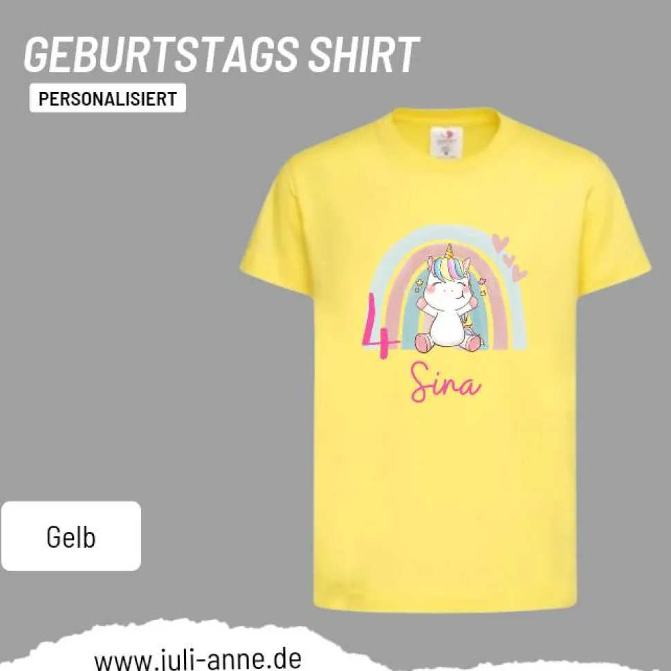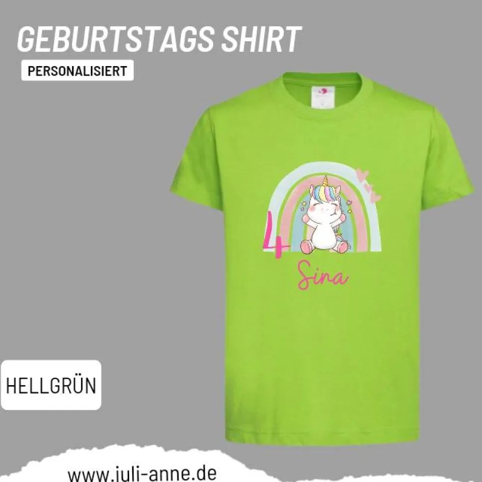 Personalisiertes Shirt GEBURTSTAG Zahl & Name personalisiert Regenbogen Dino Einhorn