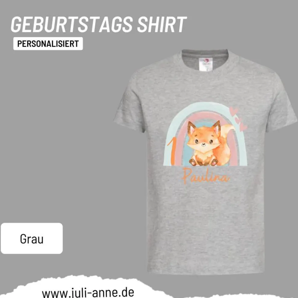 Personalisiertes Shirt GEBURTSTAG Zahl & Name personalisiert Regenbogen Fuchs
