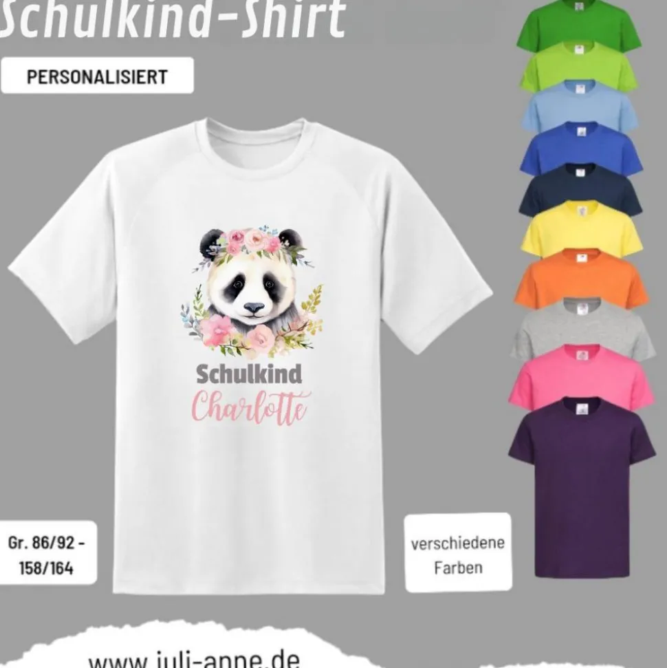 Personalisiertes Shirt SCHULKIND Name personalisiert Panda Blumen