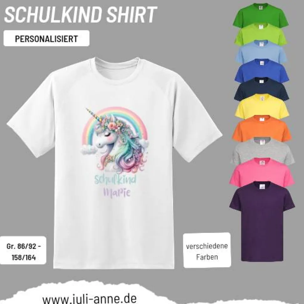 Personalisiertes Shirt SCHULKIND Name personalisiert Regenbogen Einhorn