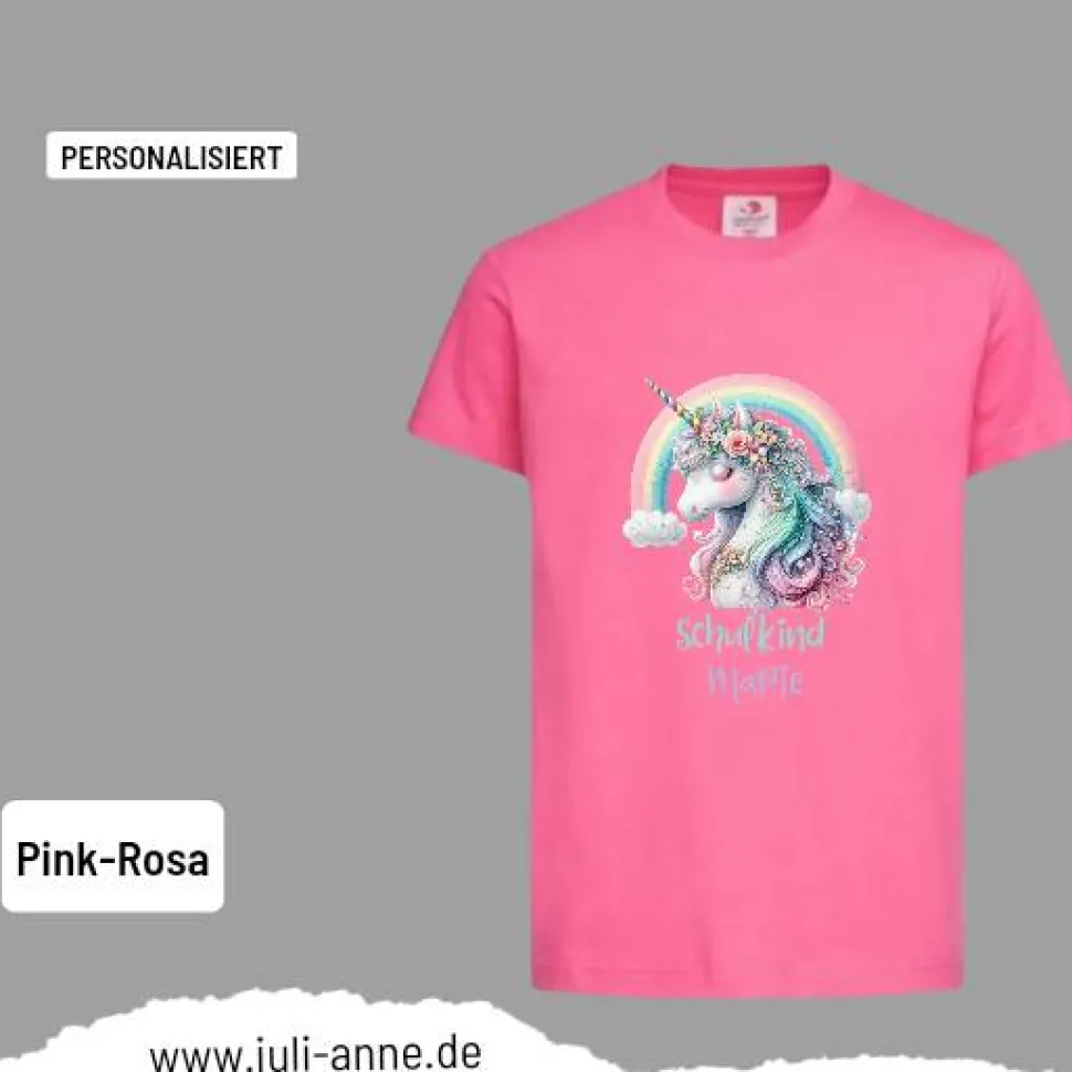 Personalisiertes Shirt SCHULKIND Name personalisiert Regenbogen Einhorn