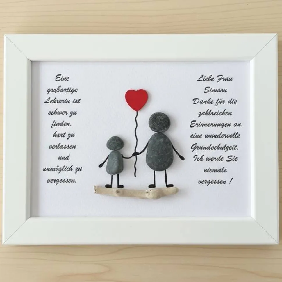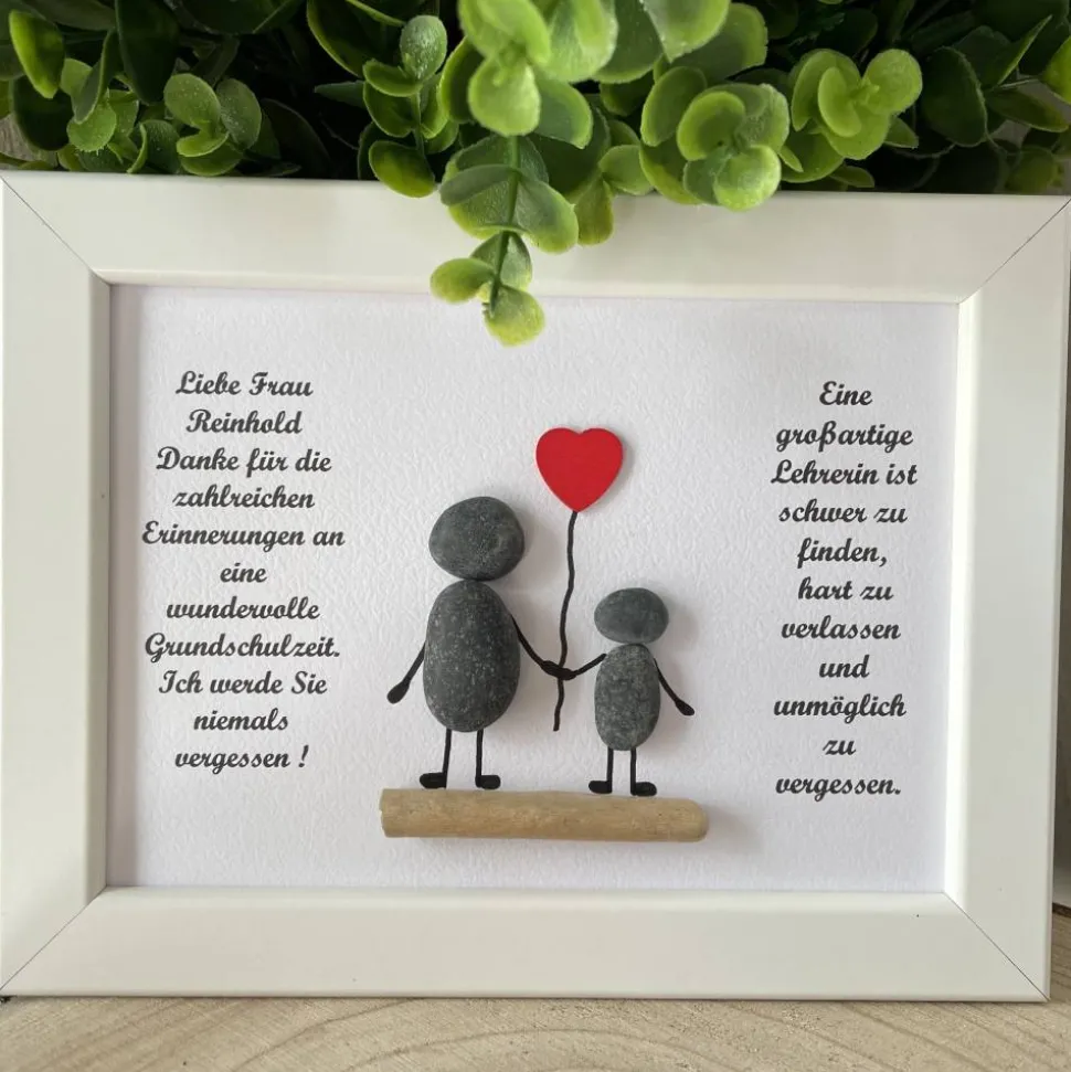 • Handgefertigtes Einzelstück – jedes Bild ist ein Unikat• Figuren aus echten Natursteinen mit liebevollen Details• Farbenfroher Blumenstrauß als Symbol der Wertschätzung• Ausdrucksstarker Dankestext für Lehrerinnen• Personalisierbar mit Namen, Datum oder Widmung• Symbolisiert Dankbarkeit, Anerkennung & Verbundenheit• Das perfekte Geschenk zum Abschied oder Schuljahresende