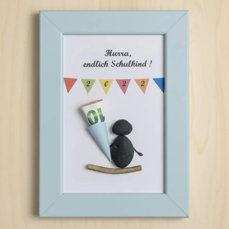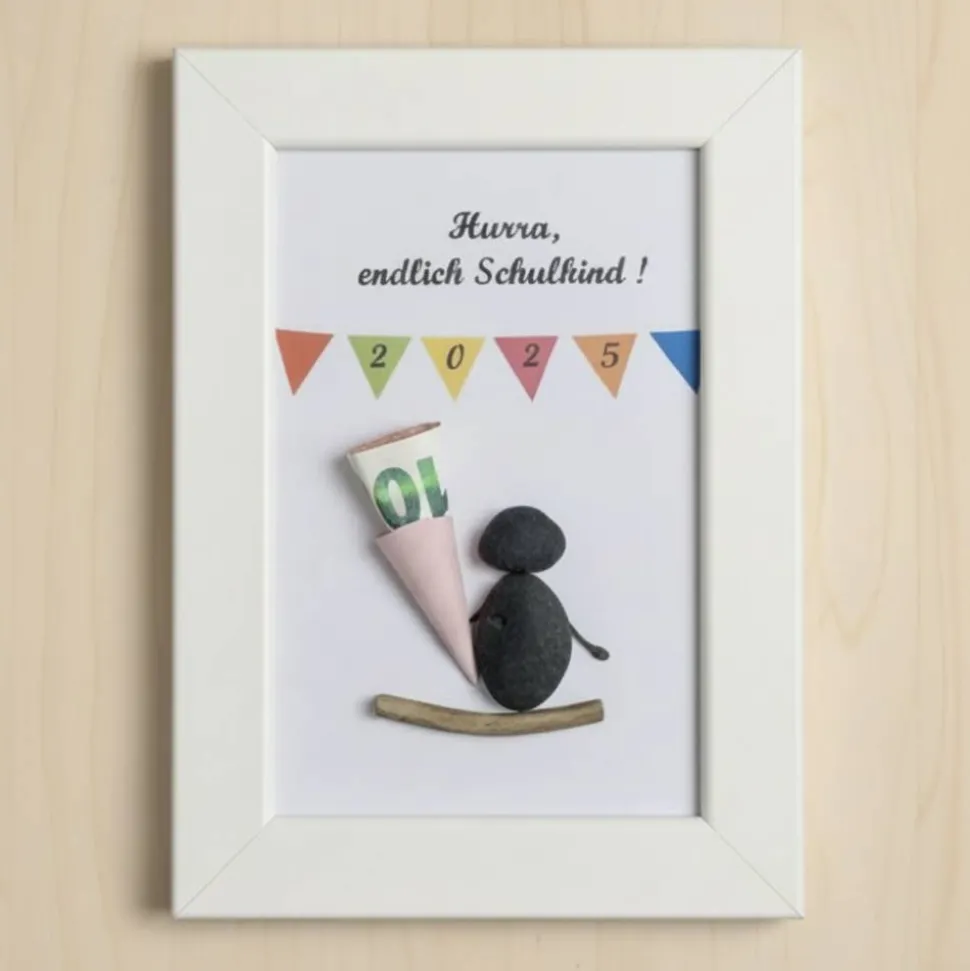 Der integrierte Geldschein dient als kreative Geschenkidee und macht dieses Steinbild zu einer besonderen Erinnerung an den Schulstart.Achtung: Der Geldschein ist nur zur Anschauung und nicht im Preis enthalten.