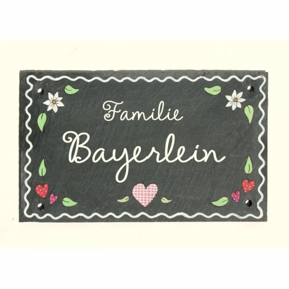 Verleihe deinem Zuhause eine besondere Note mit diesem exklusiven Türschild aus Schiefer im angesagten Lebkuchenstyle! Das hochwertige Schieferschild ist wetterfest und wird nach deinen Wünschen personalisiert – mit Familienname und individueller Schriftart. Jedes Schild ist ein handgefertigtes Unikat, liebevoll bemalt mit hochwertigen Farben und bietet eine zeitlos elegante Optik, die jeden Eingangsbereich aufwertet.