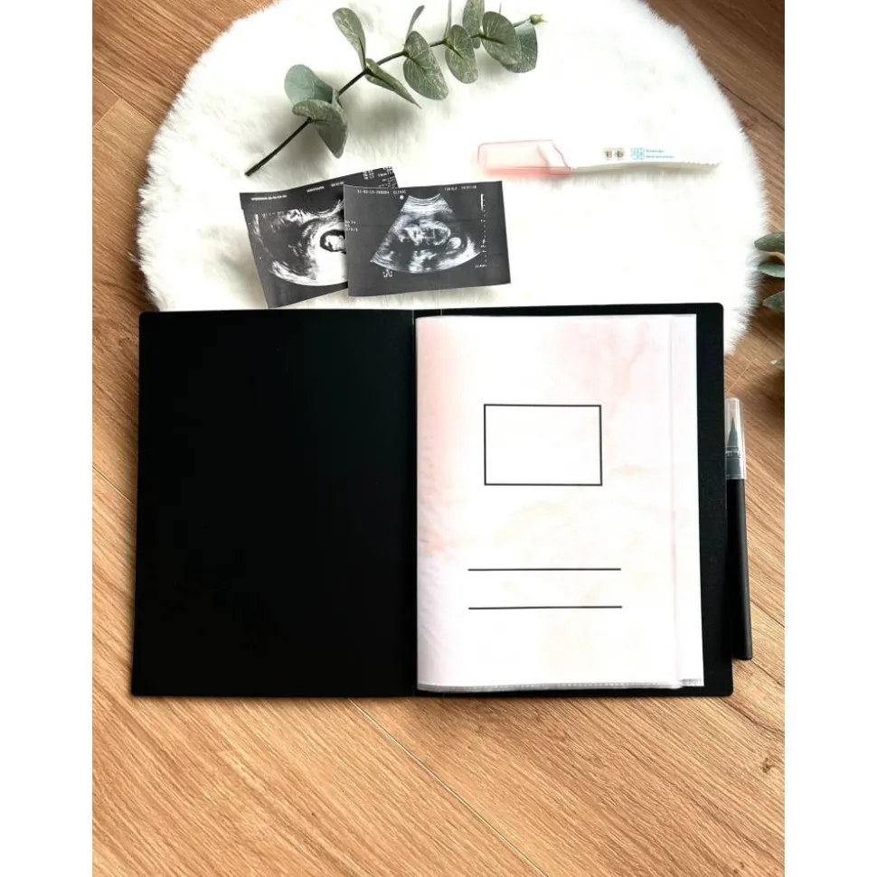Du kannst wählen, ob du die Folien leer oder mit hochwertig bedruckten Vorlagen erhalten möchtest. Unter jedem Ultraschallbild findest du zwei Zeilen, auf denen du das Datum und die Schwangerschaftswoche festhalten kannst. Das edle Rosa Design in Marmoroptik fängt die Magie dieser besonderen Zeit ein und macht das Album zu einem einzigartigen Erinnerungsstück. Durch die Personalisierungsmöglichkeit wird es zu deinem ganz persönlichen Unikat – du kannst das Deckblatt mit den Namen deines Kindes und/oder einem Spruch deiner Wahl gestalten lassen.