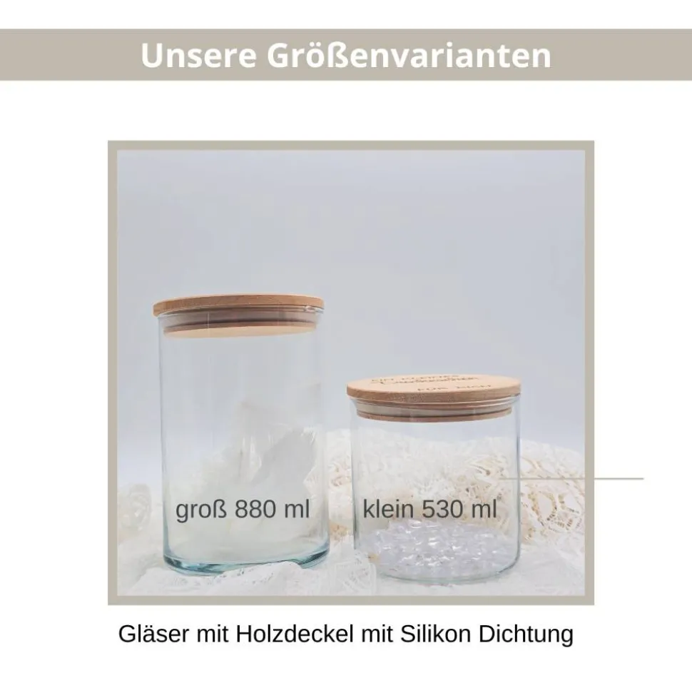 Die Vorratsgläser bieten wir in zwei unterschiedlichen Größen an: