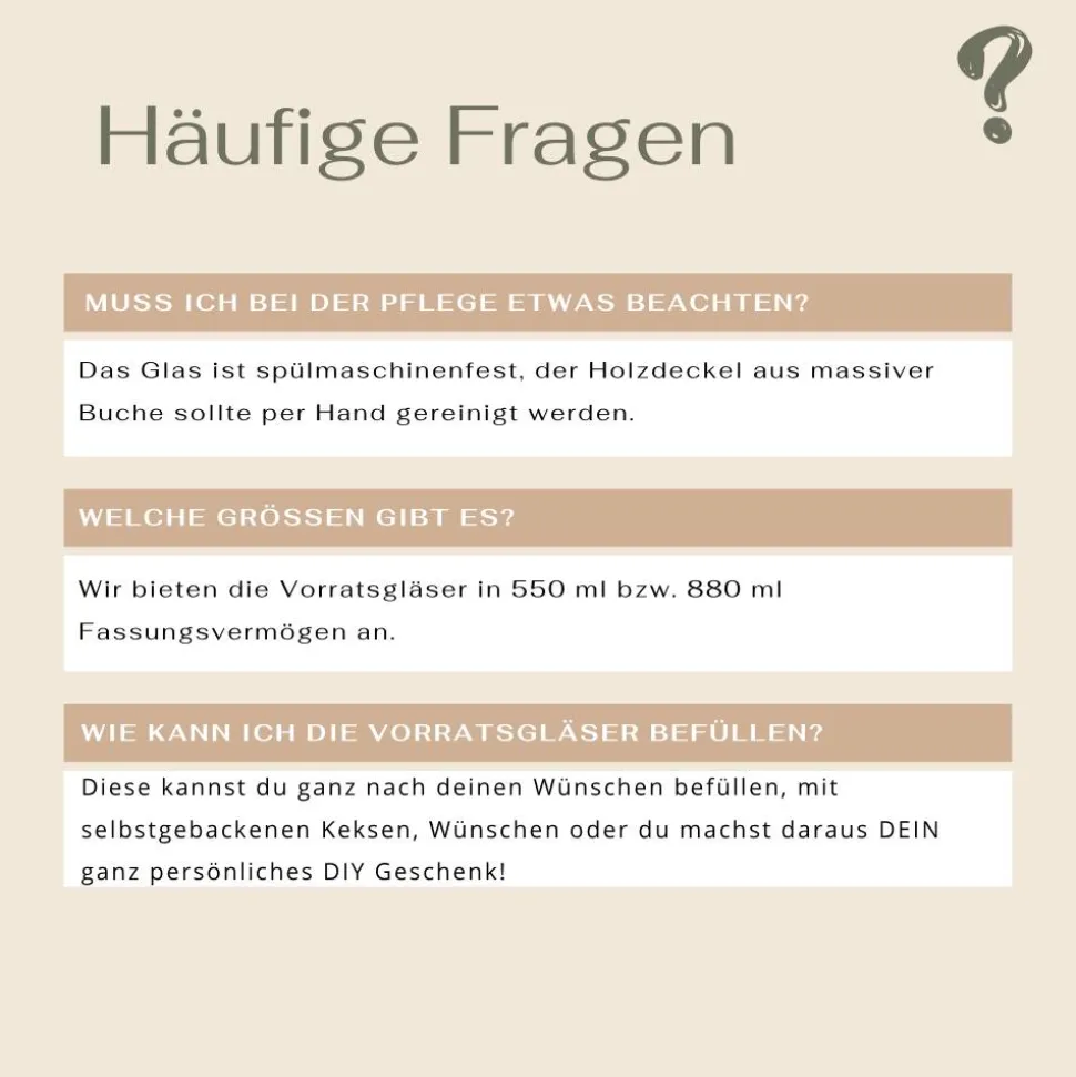• Das Glas ist spülmaschinenfest, der Holzdeckel aus massiver Buche sollte per Hand gereinigt werden.