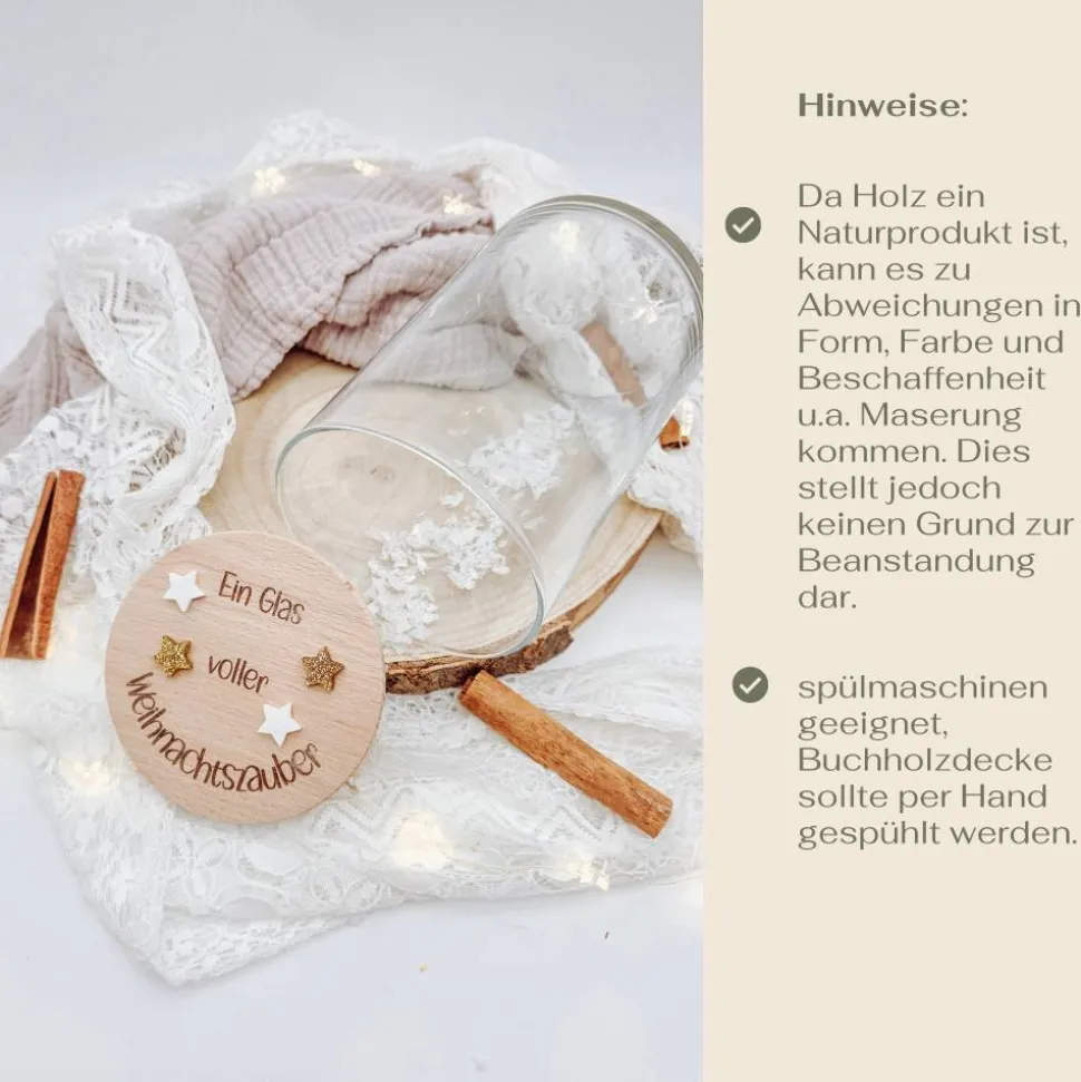 Ob auf dem Adventstisch, als Tischdeko oder Mitbringsel, das Glas fügt sich in jede Weihnachtsstimmung ein. Du kannst es jedes Jahr neu befüllen und so immer wieder Freude schenken.