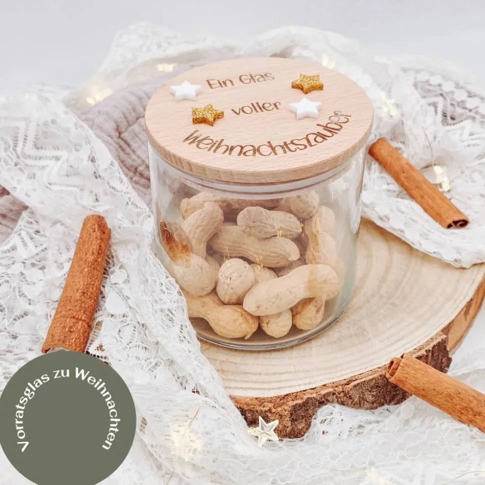 Dieses liebevoll gestaltete Vorratsglas mit Holzdeckel und Gravur ist ein Geschenk, das kleine Momente ganz groß macht. Ob mit Plätzchen, Nüssen, Schokolade oder selbstgemachten Leckereien befüllt, es zaubert jedem ein Lächeln ins Gesicht.