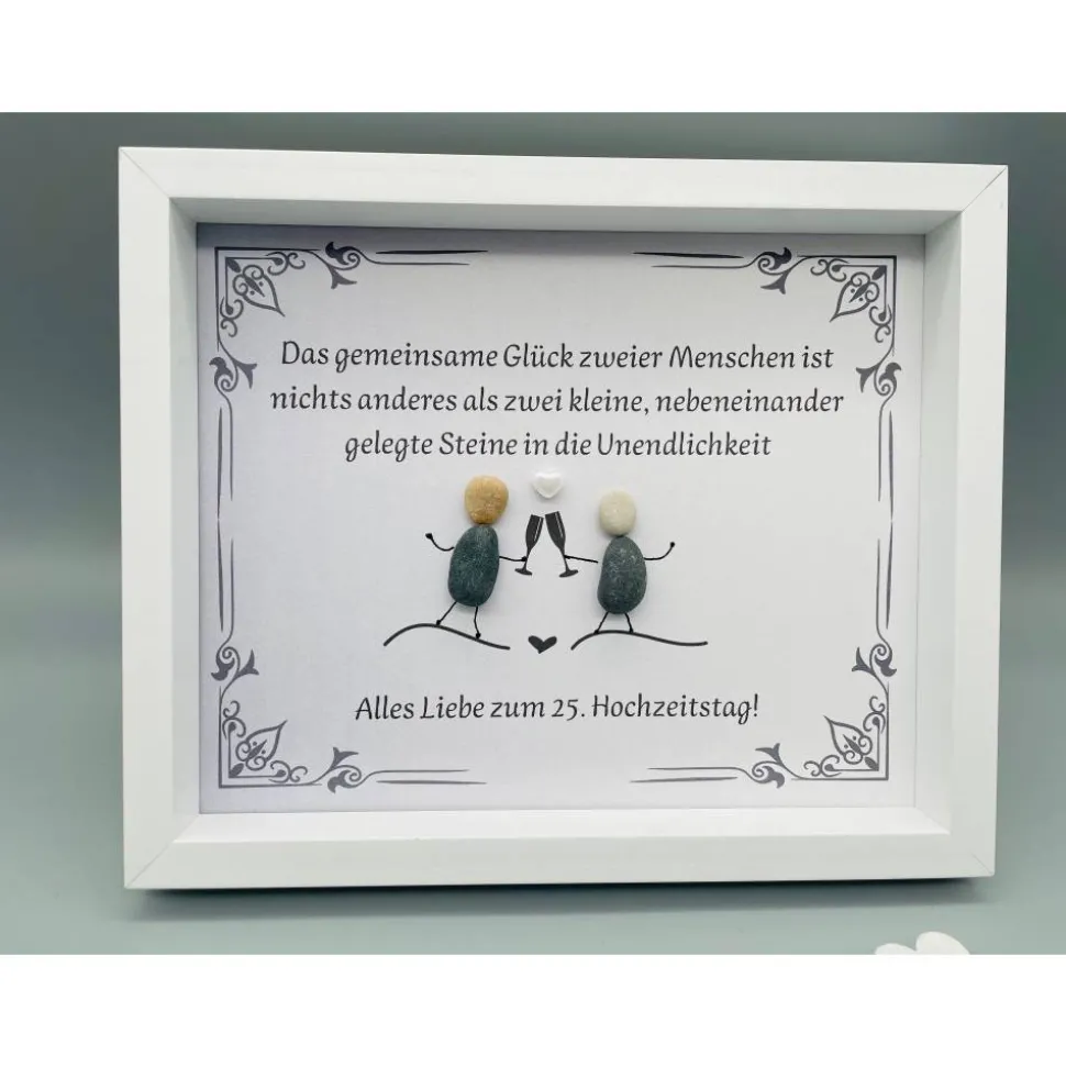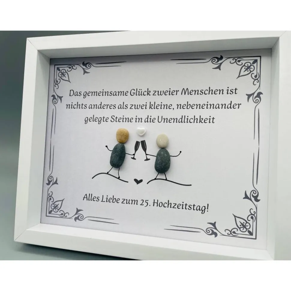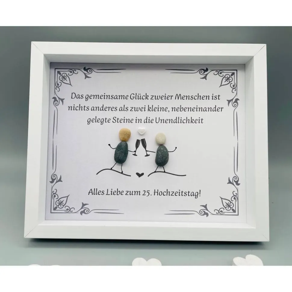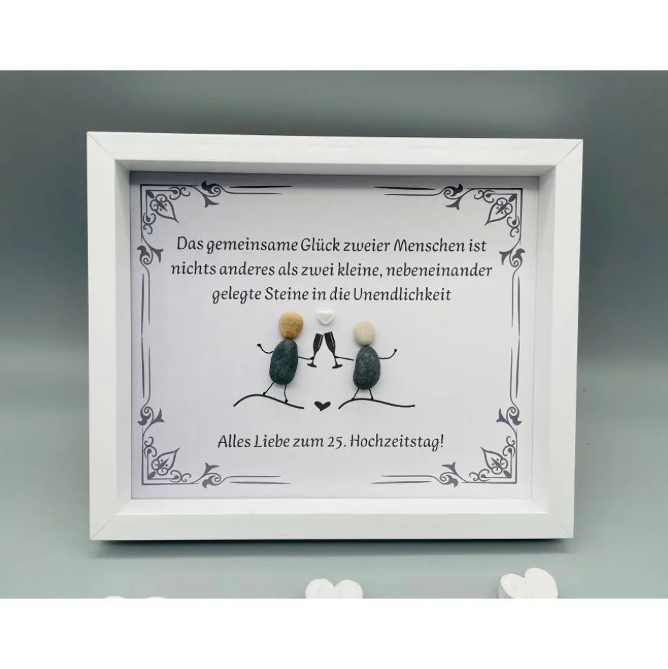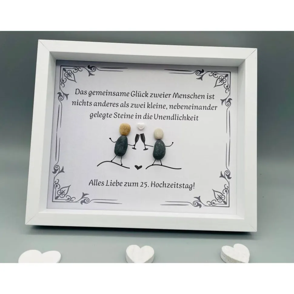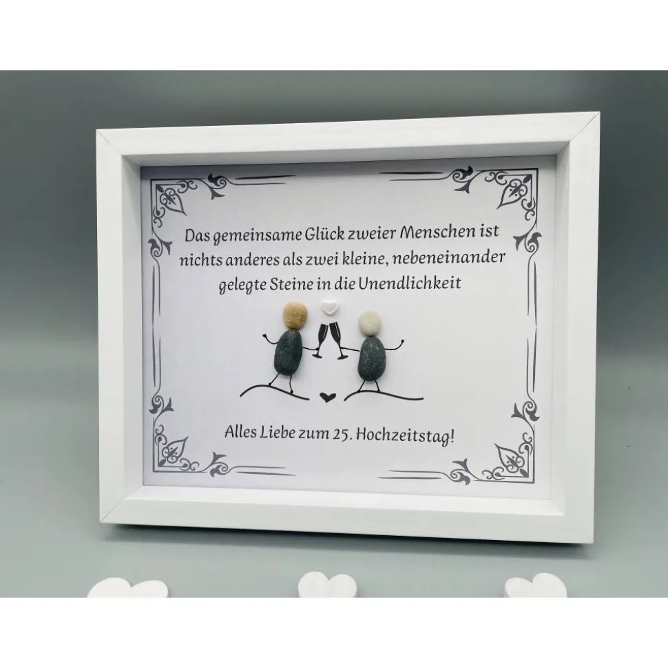 Du suchst ein einzigartiges, liebevoll handgemachtes Geschenk zur silbernen Hochzeit? Dieses personalisierte Wandbild aus echten Steinen ist ein absolutes Highlight und verleiht jedem Raum eine besondere Atmosphäre. Jedes Bild wird individuell von Hand aus ausgewählten Materialien angefertigt und ist somit ein echtes Unikat – perfekt, um deinen Liebsten eine besondere Freude zu bereiten!