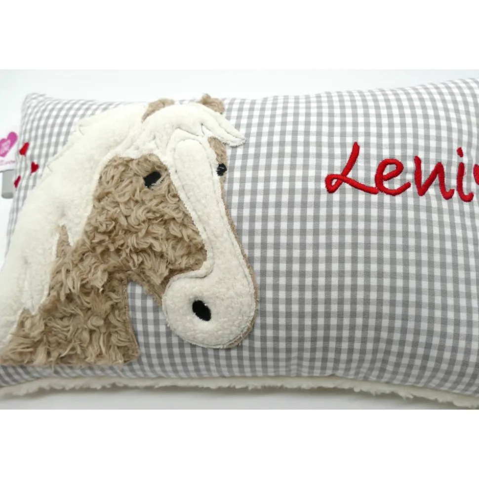 Aufwendig und mit viel Liebe zum Detail genähtes und gesticktes Mini-Kissen