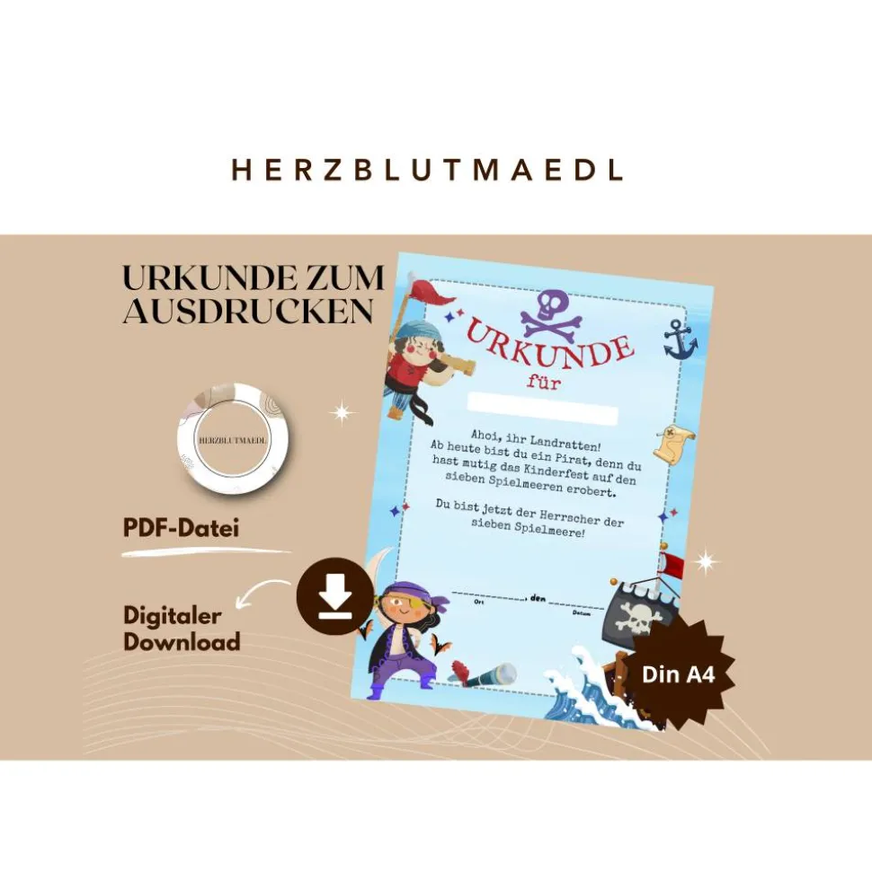 Für eine persönliche Note bieten wir dir die Möglichkeit, deine eigene Botschaft oder Widmung auf der Urkunde zu verewigen. Gegen einen geringen Aufpreis von nur 5 Euro kannst du deinen individuellen Text hinzufügen lassen, sei es eine herzliche Glückwunschnachricht, ein inspirierendes Zitat oder ein spezielles Datum. Dieses Angebot ist exklusiv in unserem Shop verfügbar, um sicherzustellen, dass dein Mitgebsel noch persönlicher wird. Lege einfach meinen Artikel „Urkunde mit Wunschtext“ zusätzlich in deinen Warenkorb und hinterlasse uns deine gewünschte Nachricht. Wir kümmern uns dann um den Rest, damit der Kindergeburtstag für immer unvergesslich bleibt.