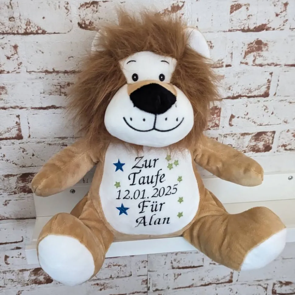 Die bestickte Variante besticht durch ein edles Design und ist deutlich strapazierfähiger als eine Bedruckung; das bedeutet, Sie können das Stofftier viele Male waschen, ohne dass sich die Schrift auflöst.