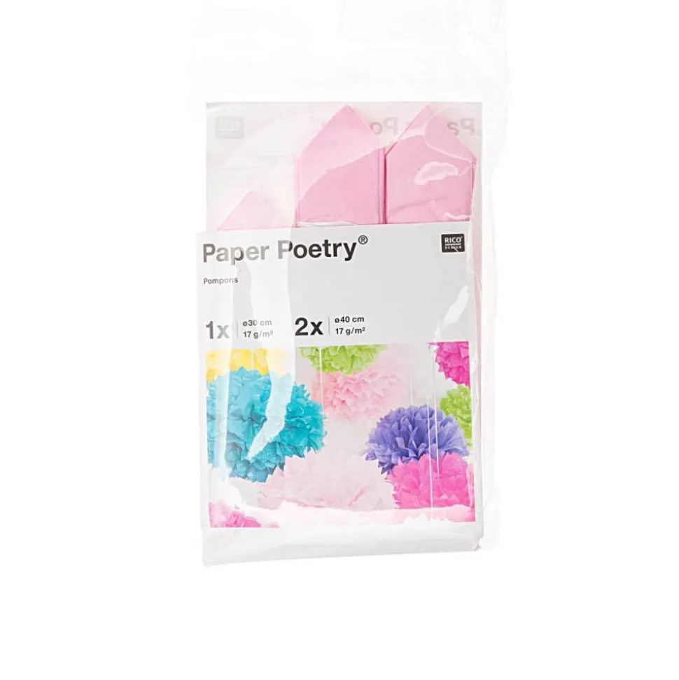 Die 3 Pompons aus zartem Seidenpapier in rosa sind in den Größen 30 cm (1x) und 40 cm (2x) enthalten. Die gefaltetenen Pompons müssen nur noch aufgefechert und zurechtgezupft werden. Tolle Dekoration für Hochzeiten, Geburtstage, Schaufenster oder auch Mädchenzimmer.