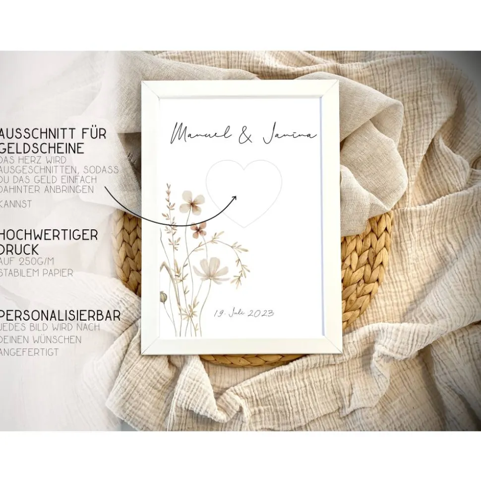 In das Herz kannst du dann wahlweise das Geld oder ein Bild des Brautpaares machen (das Herz wird ausgeschnitten geliefert)