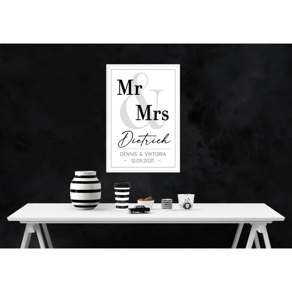 Poster MR & MRS mit Namen, Datum, und Ort | Personalisiert | Hochzeitsgeschenk | Geschenk Brautpaar | Sie Ihn | Hochzeit