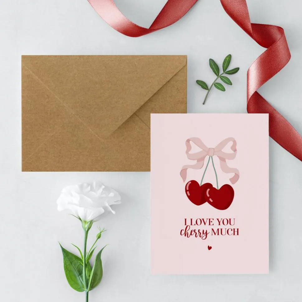 Diese trendige Postkarte eignet sich perfekt als Geschenkkarte für Paare zum Valentinstag, Geburtstag und anderen Anlässen. Die Karte mit süßen illustrierten Kirschen in Herzform ist eine kreative Liebes-Botschaft.Die Rückseite der Karte ist unbedruckt, sowie beschreibbar und kann somit mit einer persönlichen Botschaft versehen werden.