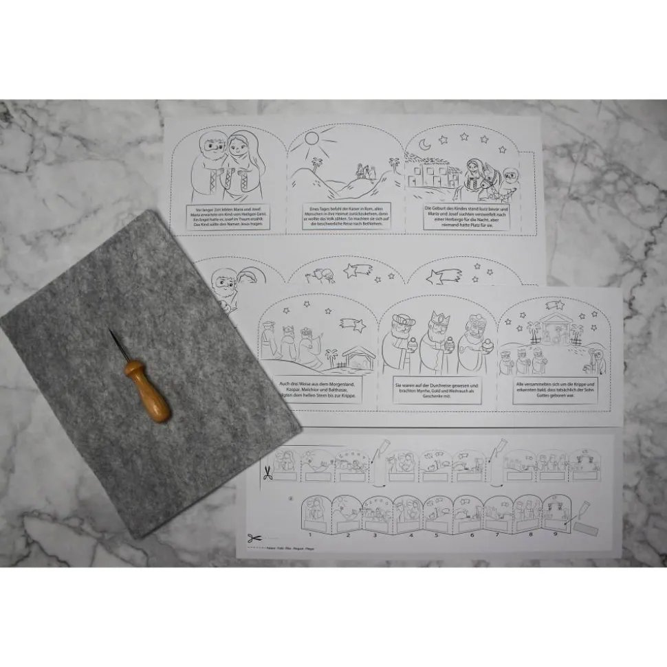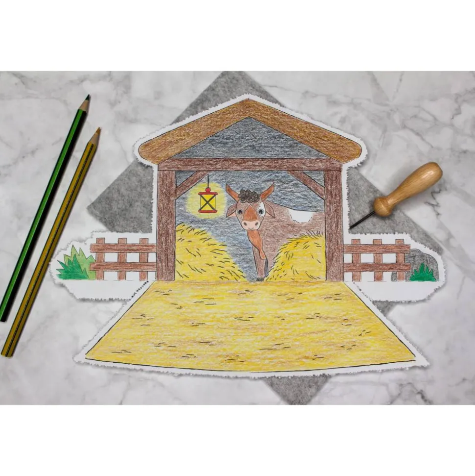 ihre eigene Weihnachtskrippe zu basteln und sie farblich nach ihren Wünschen gestalten zu lassen!
