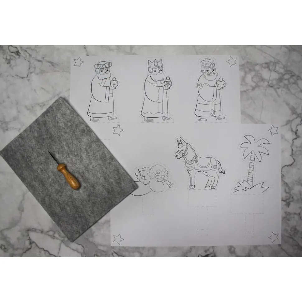 In diesem Prickel-Set der Marke Ursus®, sind komplette Vorlagen zum Basteln einer Weihnachtskrippe und Figuren enthalten, inklusive Bastelanleitung.