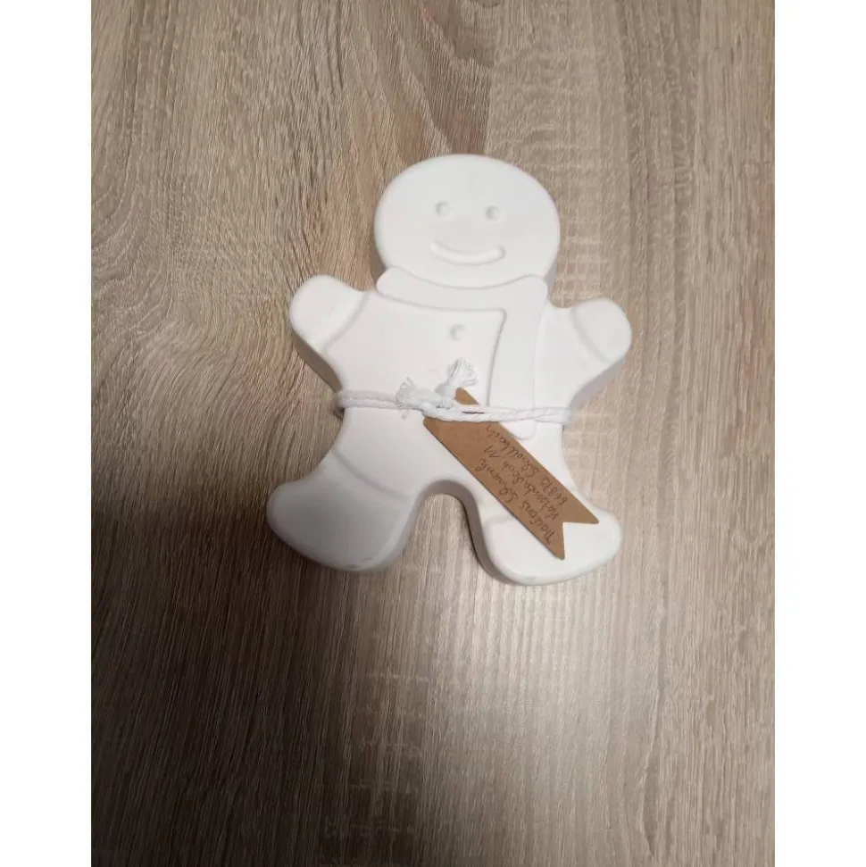 Ihr könnt den Lebkuchenmann entweder weiß lassen oder ihn mit Acrylfarbe bemalen. Er ist ein echter Hingucker in eurer Dekoration.