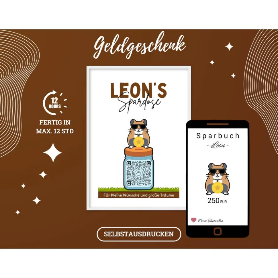 QR-Code Sparbuch Hamster | Geldgeschenk zum Ausdrucken | Last Minute DIY Geschenk | Digitaler Download PNG